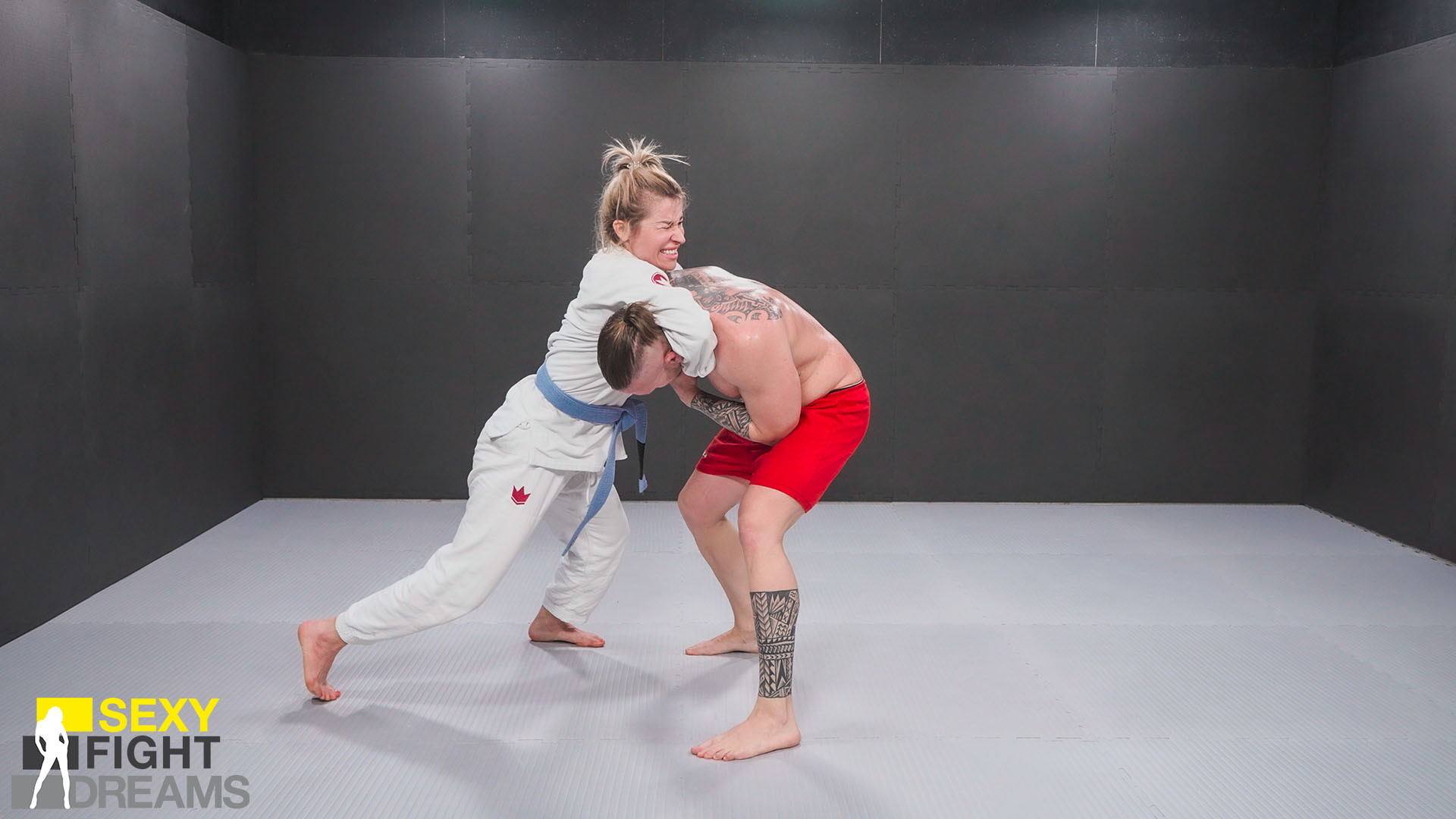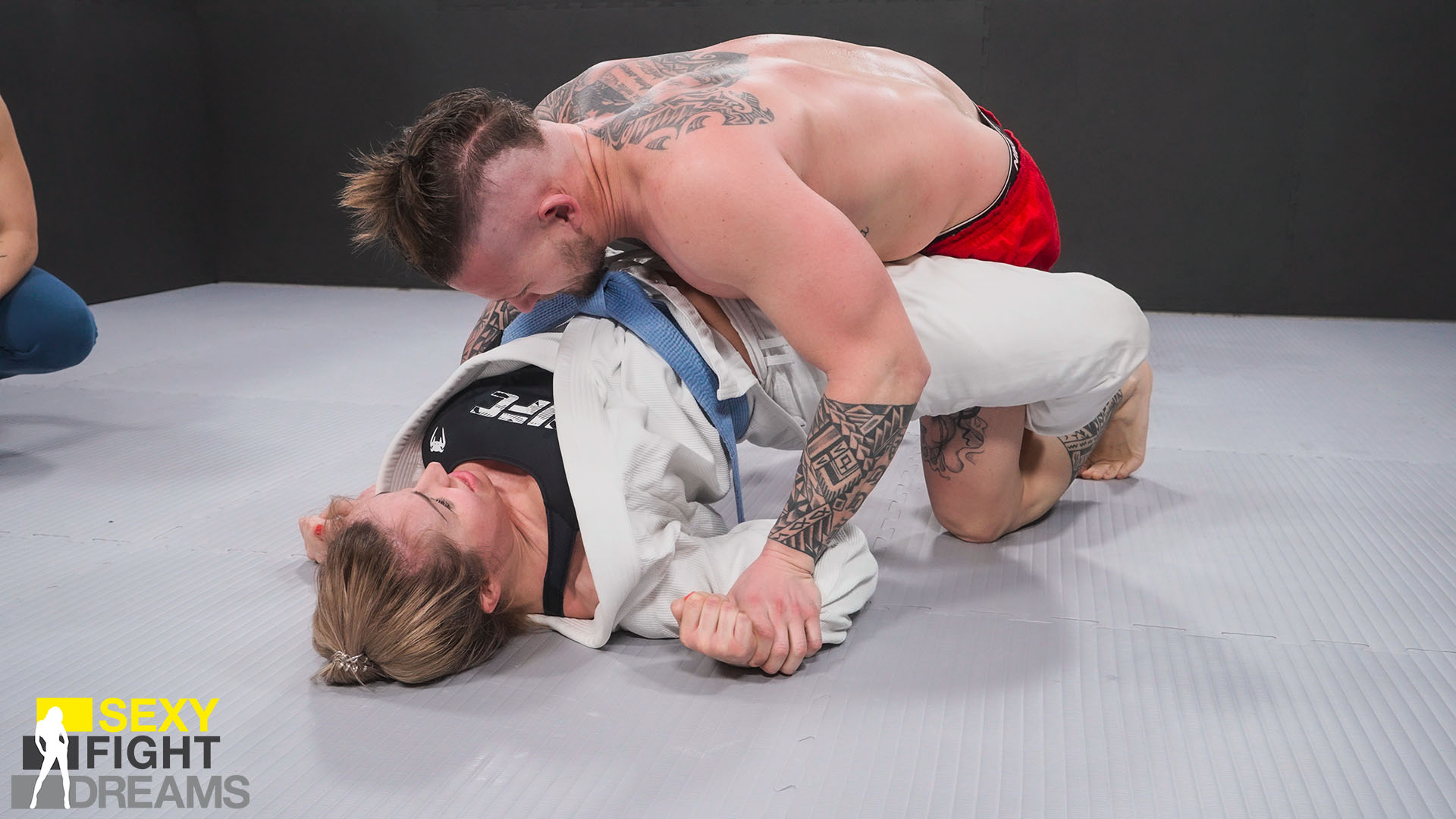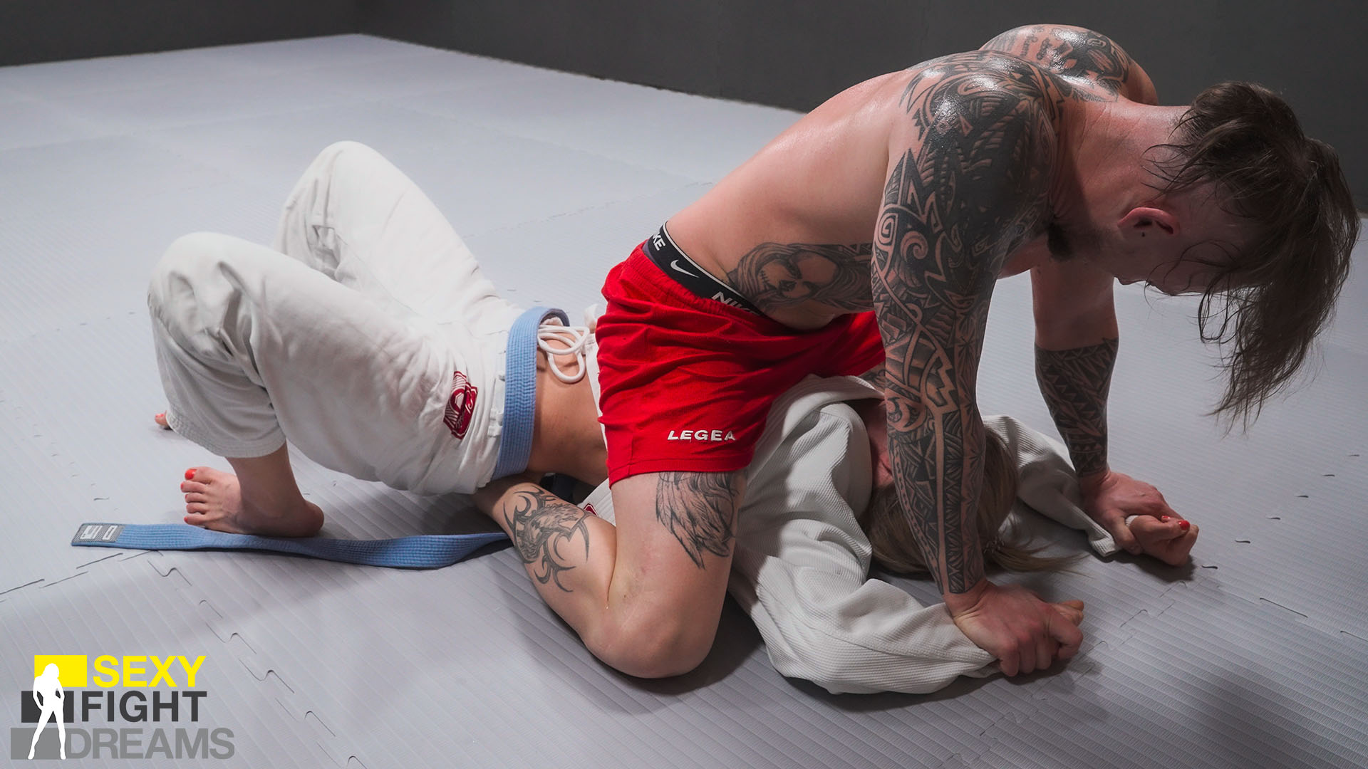 This match sizzles with intensity from start to finish! While you might expect Pamela to dominate from the outset, think again. Pinning Filippo down and scoring points turns into a real challenge, thanks to his solid technique and impressive resilience. He even manages to turn the tables several times, taking points and putting Pamela in serious trouble. It’s an exhilarating back-and-forth, filled with passion, sweat, and competitive fire.