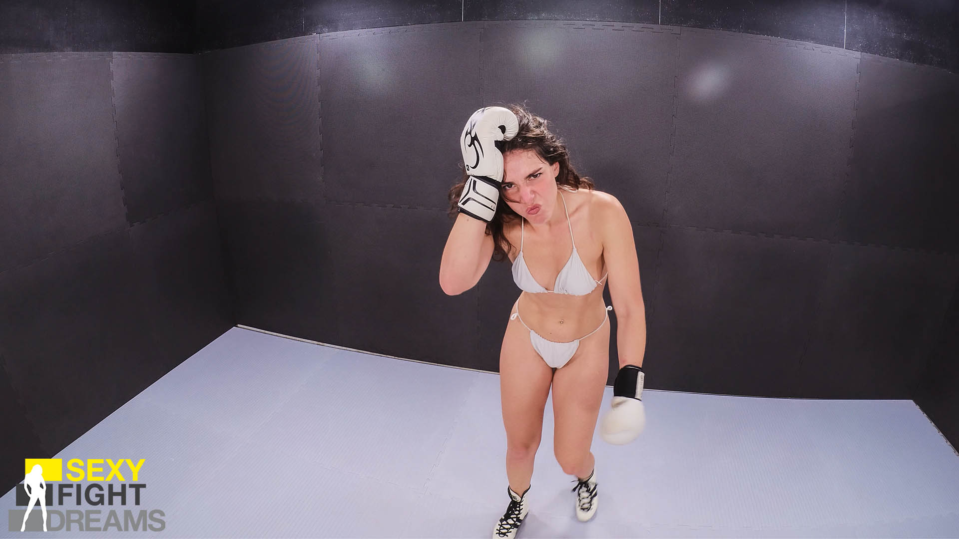 Her stunning body, wrapped in the white swimsuit, is an incredible sight. Seeing her first dominant and then collapsing to the ground helpless is unmatched.