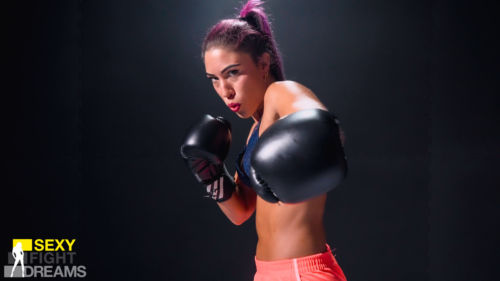 The sizzling brunette transforms every strike into a display of controlled ferocity. Devastating uppercuts, crisp jabs, powerful crosses — Sabrina builds a symphony of impact, each punch landing with authority. The shifting angles intensify the immersion, making every blow feel closer, heavier, more personal.