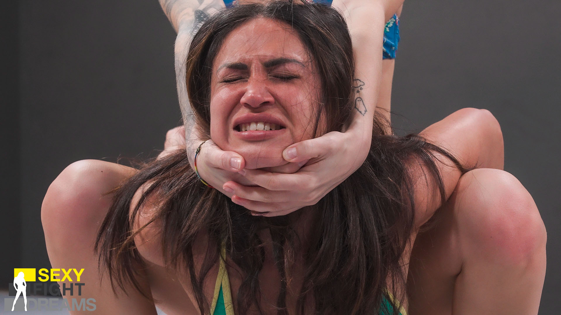 When Chiara thinks she’s in control, Ronda strikes back—sharp, cruel, and calculated. After softening her up with punishing holds, she locks in a flawless figure-four headscissor that wrings the last breath from her rival.